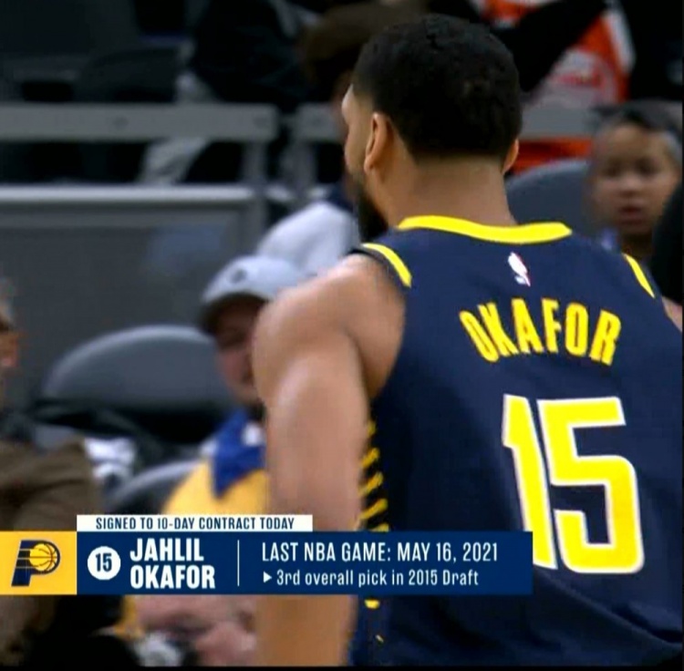 此役,2015年的探花秀賈利爾-奧卡福在時隔四年后重新回到NBA賽場,他替補出戰(zhàn)3分22秒,得到1籃板1助攻。