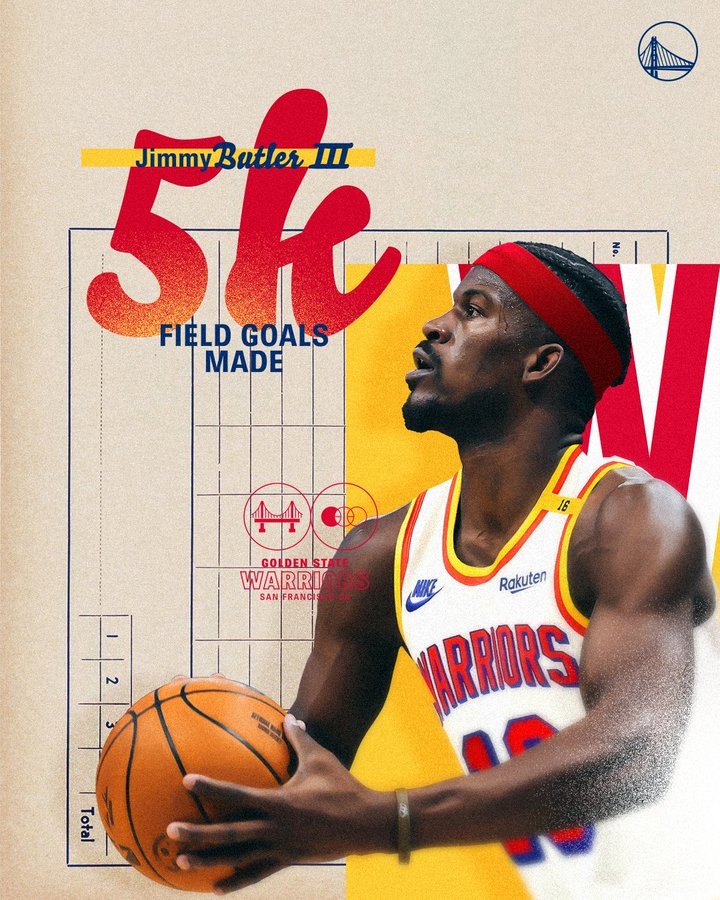 這球過后,巴特勒生涯運動戰(zhàn)進球數(shù)來到5000個,勇士官方也送上祝福。