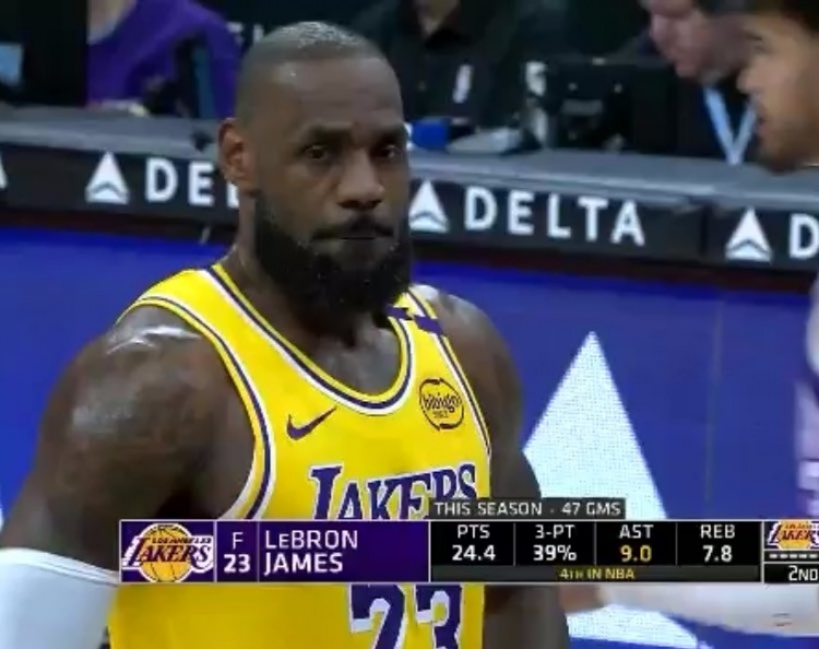 - 老頂中鋒!詹姆斯上半場8中4得到12分4板3助1斷 三分4中3