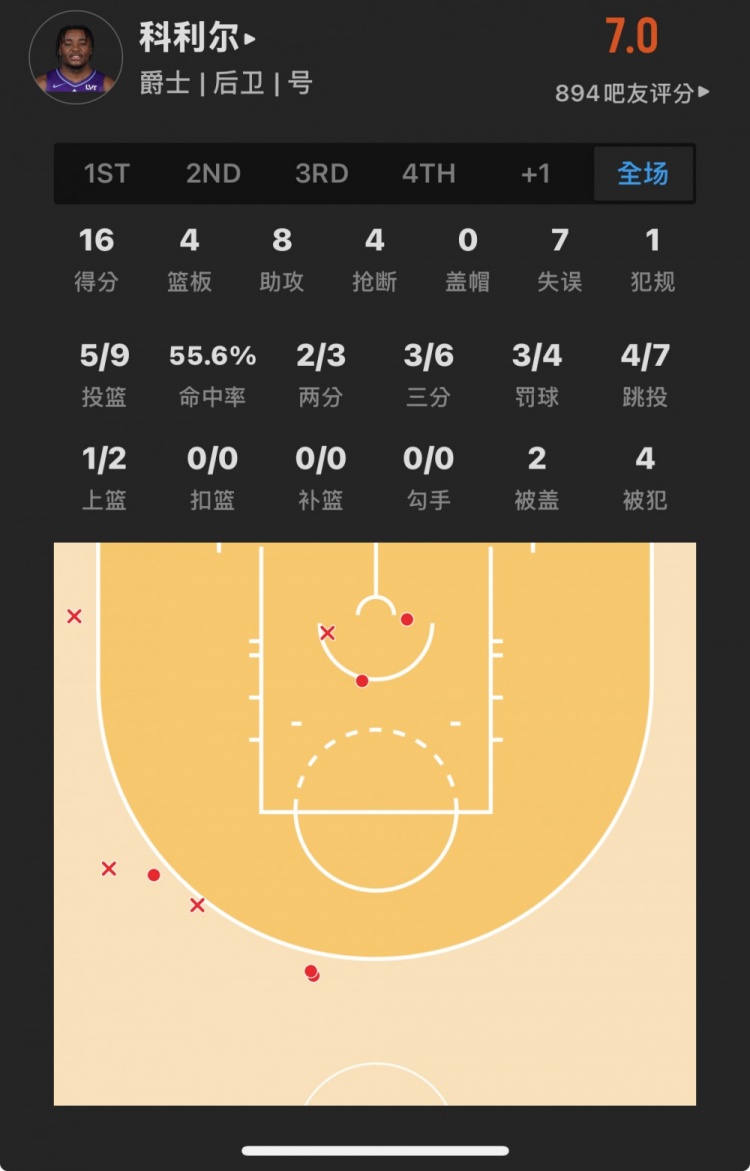 菜鳥丨爵士32號秀20分10板 科利爾16+4+8+4斷 熱火中鋒韋爾17+9