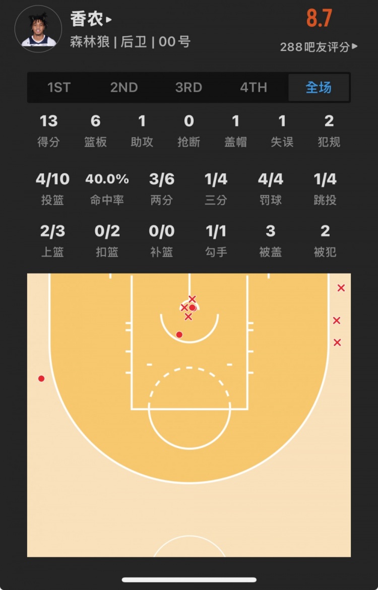 森林狼27號秀 小特倫斯-香農(nóng) 登場28.6分鐘