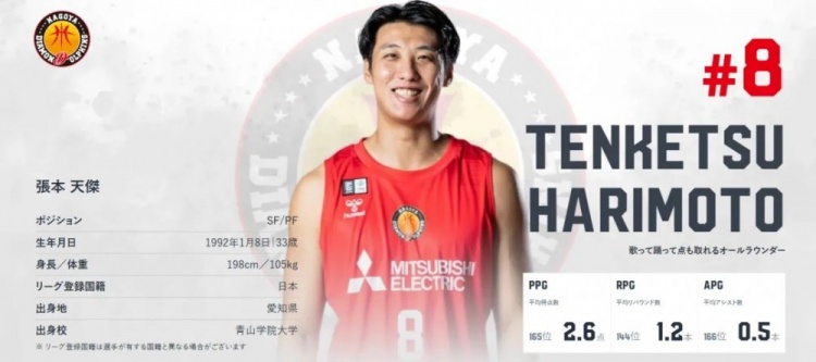 這里提一下張本天杰,他因為是16歲以前歸化,不受歸化政策影響,另外我們國內(nèi)的資料都表示出生在沈陽,不知道B聯(lián)賽為什么把他的出生地放在了愛知縣