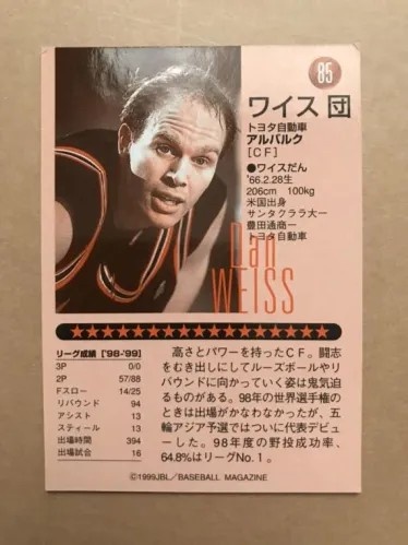 1999年,福岡舉辦的亞洲杯男子籃球預(yù)選賽中,日本隊加入了一名名叫“ワイス 団(英文名Daniel A Weiss)”的中鋒球員。這也是日本歷史上第一次啟用“歸化球員”。