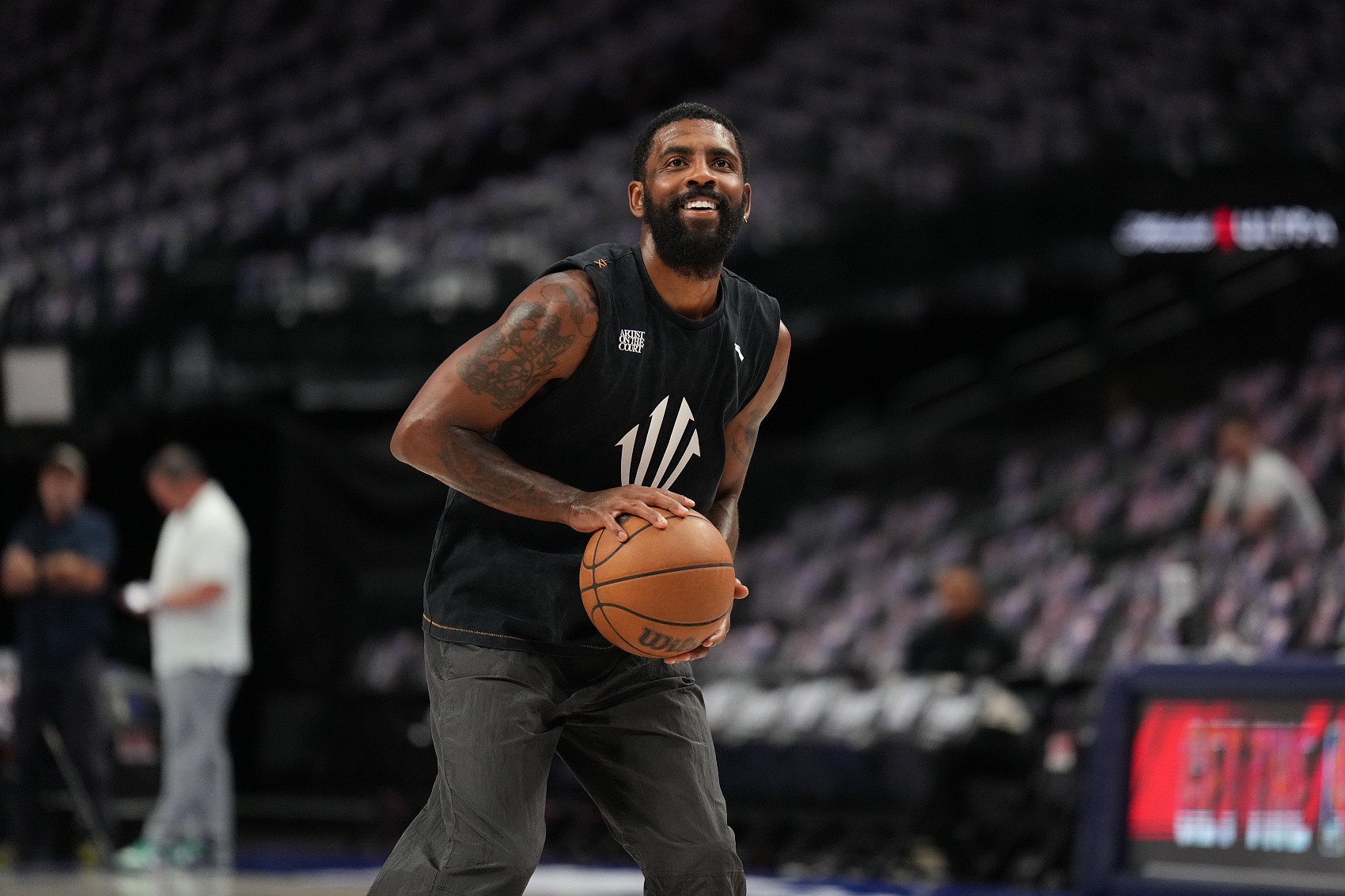- 愛(ài)過(guò)?詹姆斯賽前看歐文精彩運(yùn)球上籃 在場(chǎng)邊哈哈大笑