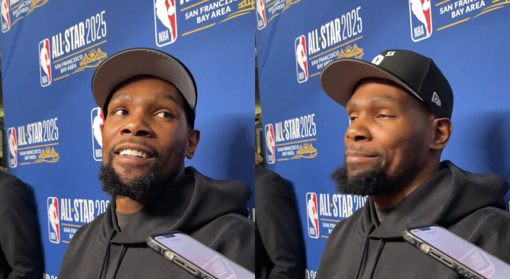 賽后,有記者采訪杜蘭特:“你厭倦了庫(kù)里剛過(guò)半場(chǎng)就扔三分的行為嗎?”
