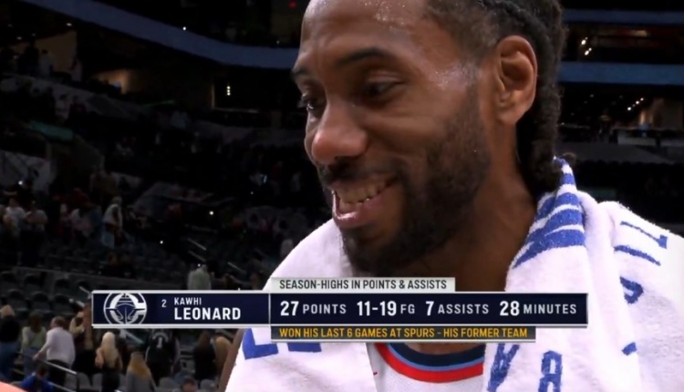 賽后,萊昂納德接受了記者采訪。當(dāng)被問(wèn)及自己的得分和出場(chǎng)時(shí)間接創(chuàng)生涯新高時(shí),他糾正道:“我看到了,是賽季新高,不是生涯新高。我現(xiàn)在感覺(jué)很好。我們?cè)缟系臅r(shí)候看了我的狀態(tài)如何,我們會(huì)繼續(xù)前進(jìn)?!?/p>