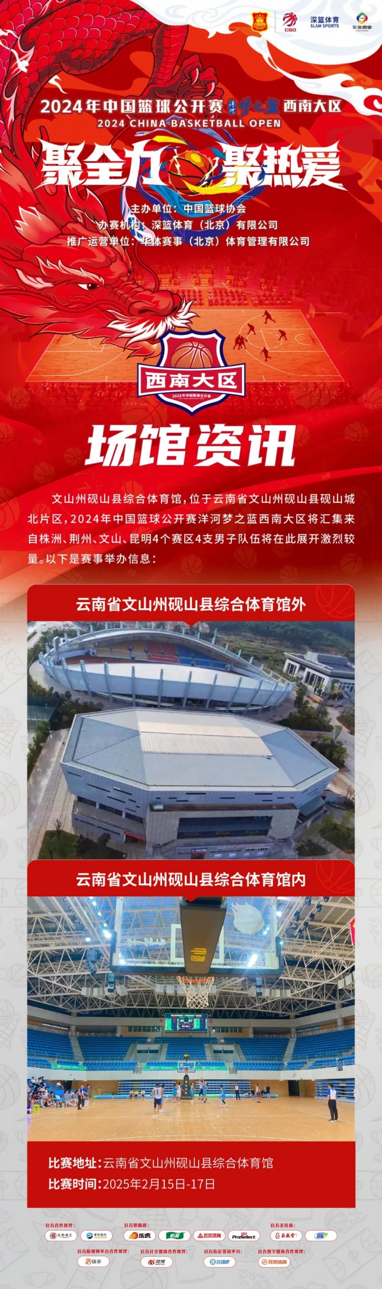 2月15日-17日,2024年中國籃球公開賽洋河夢之藍西南大區(qū)賽將在云南省文山州硯山縣綜合體育館舉辦,來自西南賽區(qū)各省市的4支男籃隊伍將在文山硯山激烈爭奪通往全國總決賽的入場劵。新年伊始,齊聚文山,誰能在這場激烈競爭中突出重圍,捧起通過全國總決賽的希望之鑰,讓我們拭目以待!