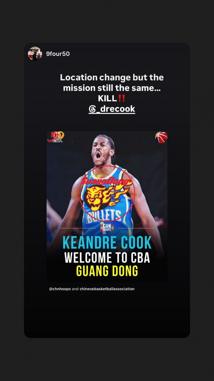 2月21日訊 今天,基安德烈-庫克更新個人社媒,曬出自己加盟廣東男籃的合成圖。