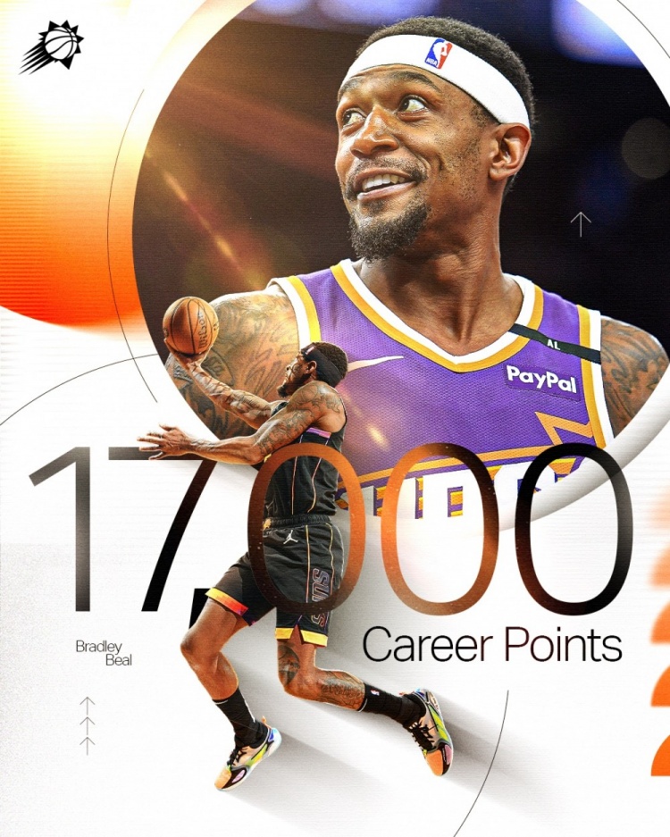 - 小里程碑走一個(gè)!比爾生涯總得分跨過17000分大關(guān)