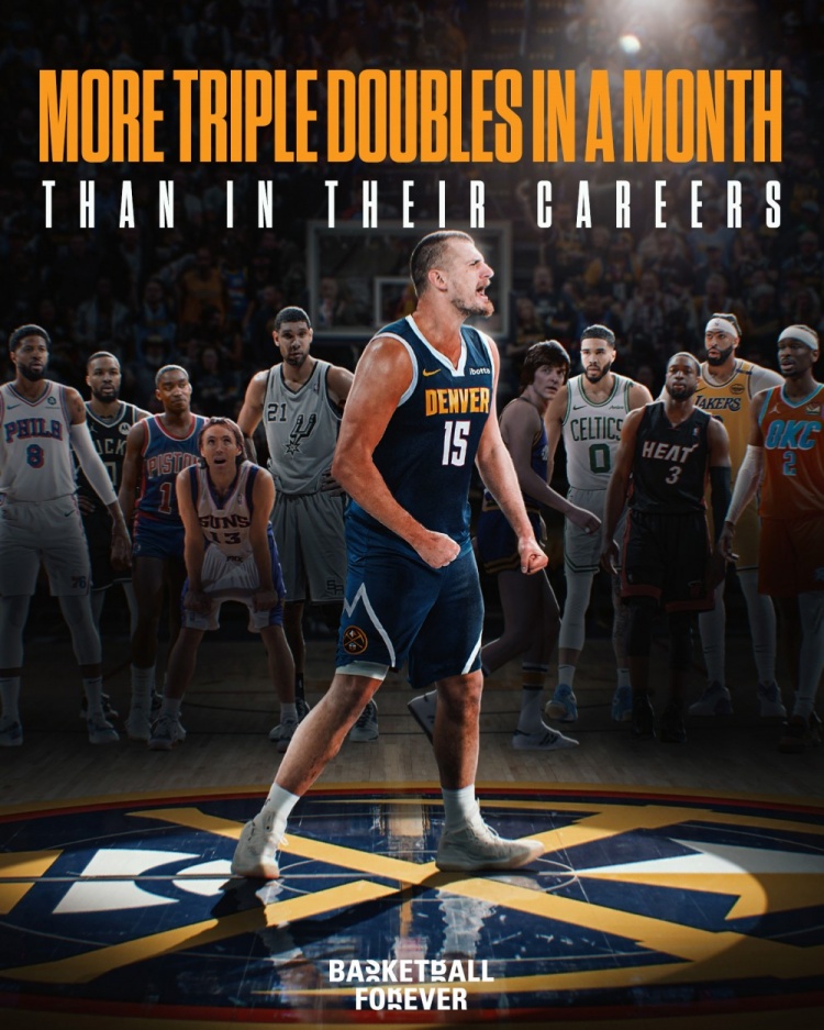 約基奇本月砍8次三雙 超鄧肯/納什/韋德/喬治/濃眉等人生涯三雙數(shù)
