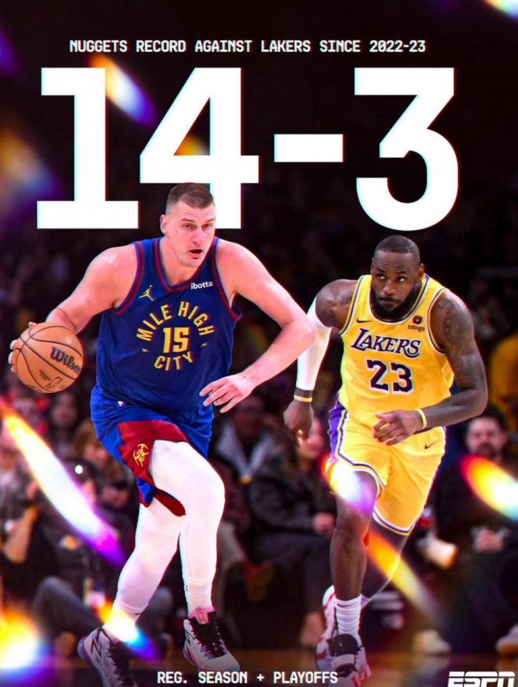 今日刀兵相見!自2022-23賽季以來 掘金對陣湖人合計取得14勝3負(fù)