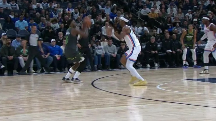雷霆第二節(jié)領(lǐng)先森林狼19分,第三節(jié)被森林狼反超7分,最后好歹贏了。