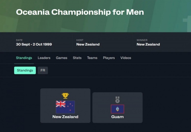 1999年,關(guān)島唯一一次參加大洋洲籃球錦標(biāo)賽,這個(gè)比賽是奧運(yùn)會大洋洲參賽名額的預(yù)算賽,一般都是澳新二人轉(zhuǎn),但2000年澳大利亞是奧運(yùn)會東道主直接晉級,關(guān)島被迫參賽,取得了第二名的歷史最好成績