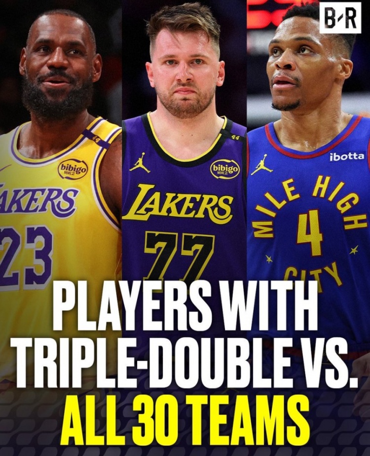 本場比賽過后,東契奇對陣聯(lián)盟30支球隊全部砍下過三雙(包括季后賽)。