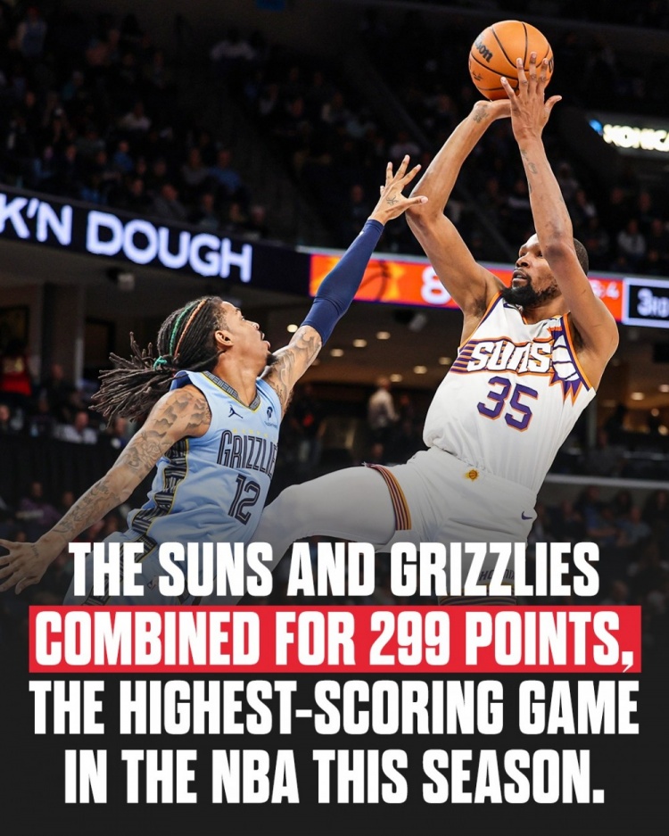 - 昨日太陽148-151惜敗灰熊 兩隊砍299分創(chuàng)本賽季單場得分紀(jì)錄