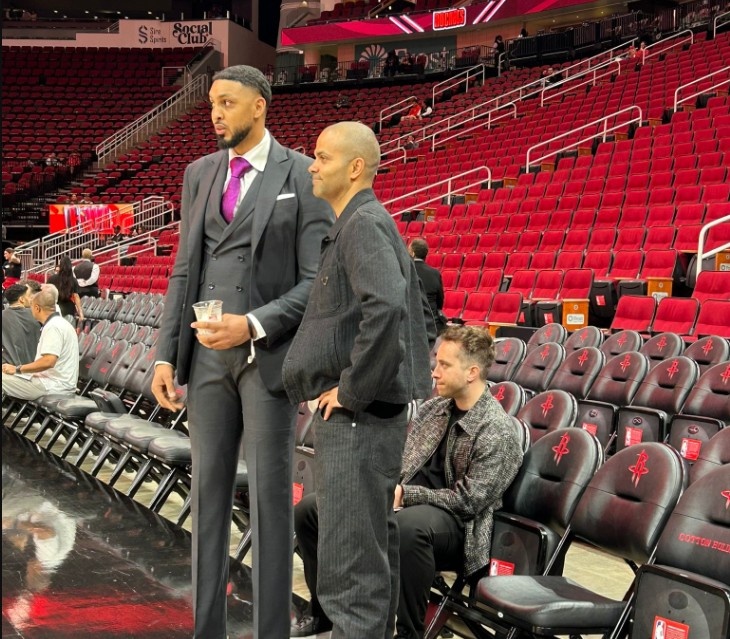 值得一提的是,馬刺名宿托尼-帕克今天來(lái)到了現(xiàn)場(chǎng),為馬刺助威。