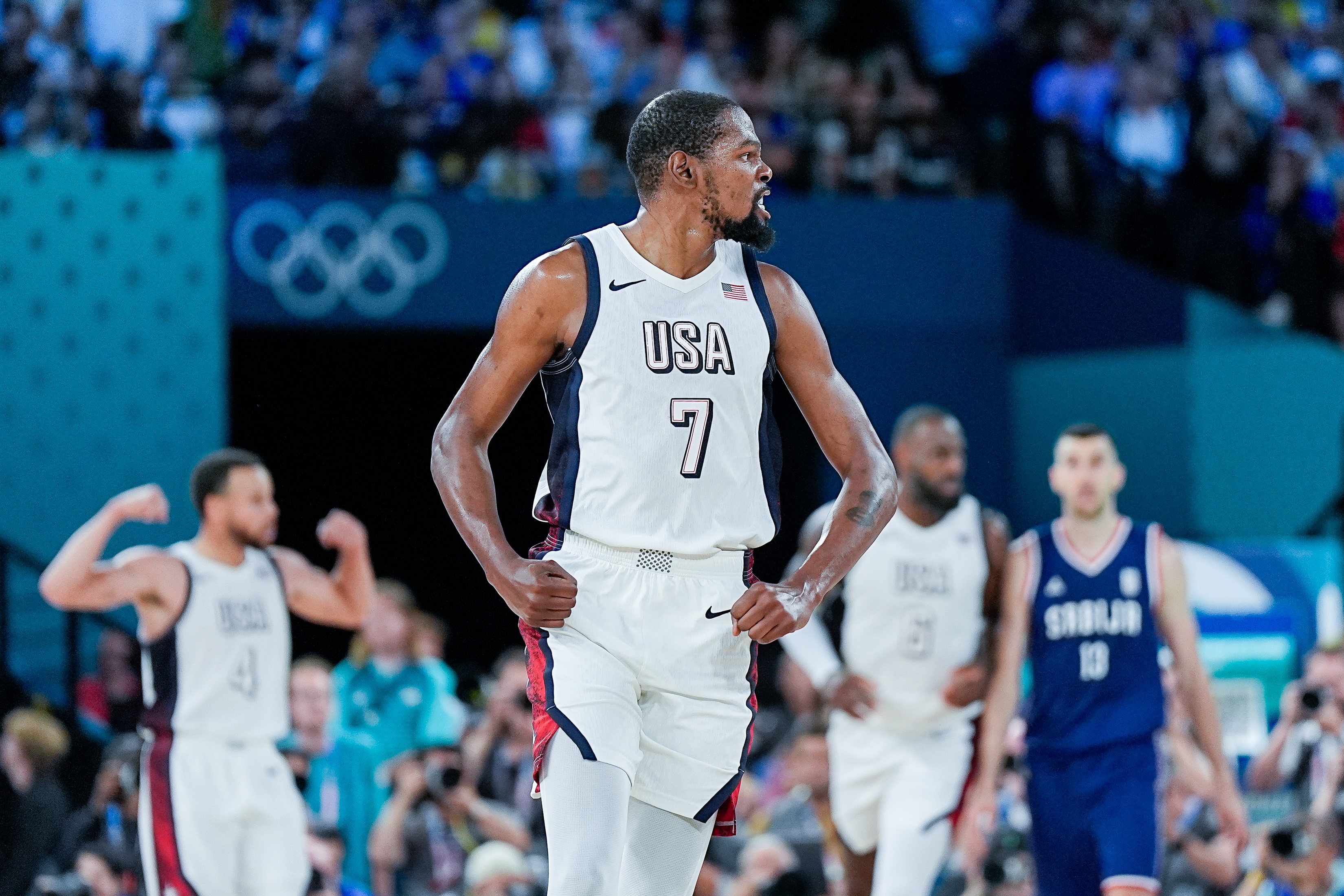 杜蘭特是美國(guó)男籃奧運(yùn)歷史得分王,得到2012年倫敦奧運(yùn)會(huì)、2016年里約熱內(nèi)盧奧運(yùn)會(huì)、2020年?yáng)|京奧運(yùn)會(huì)、2024年巴黎奧運(yùn)會(huì)的金牌。到2028年他將年滿40歲。