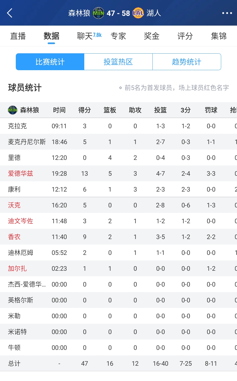 - 還在找出手時機!愛德華茲半場7中4&三分3中2拿到13分5板3助