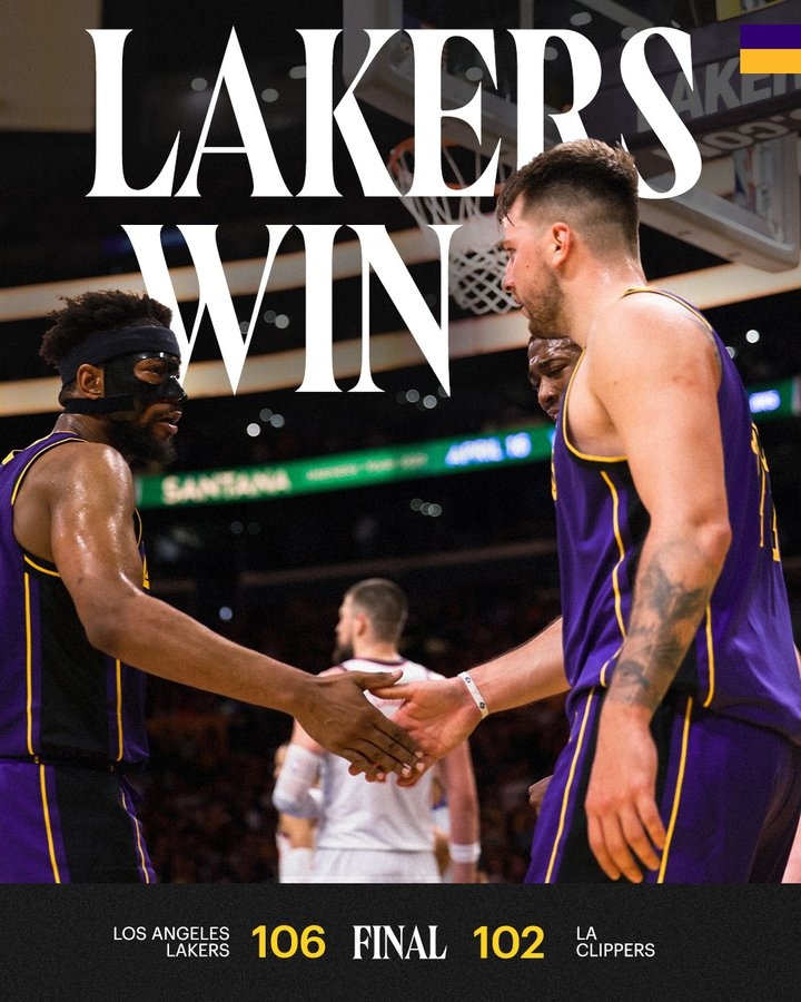 賽后,湖人官方曬出贏球海報(bào),東契奇和古德溫登上封面。