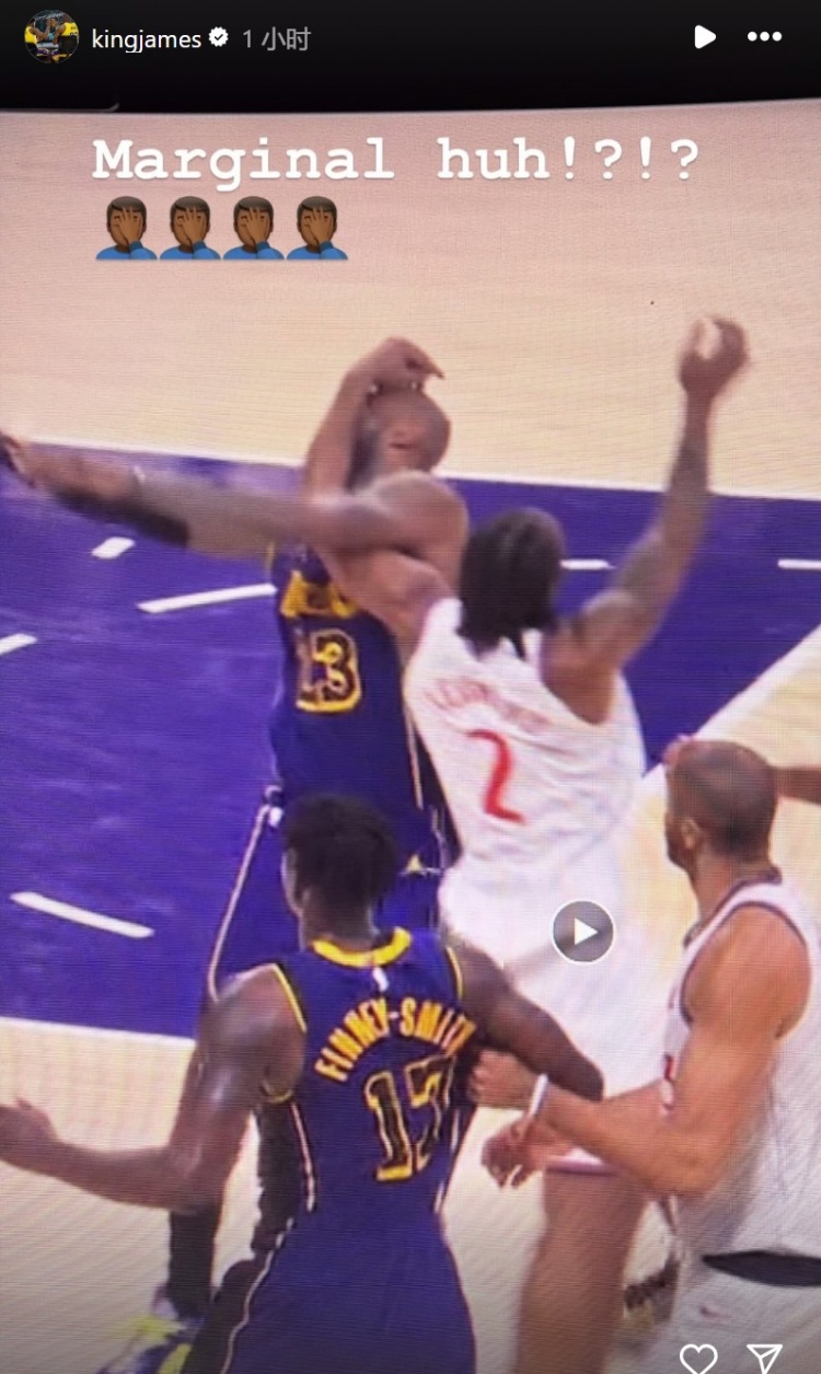 賽后,詹姆斯轉(zhuǎn)發(fā)了這個(gè)瞬間的照片,并寫道:“輕微接觸啊????????????????!?!!”