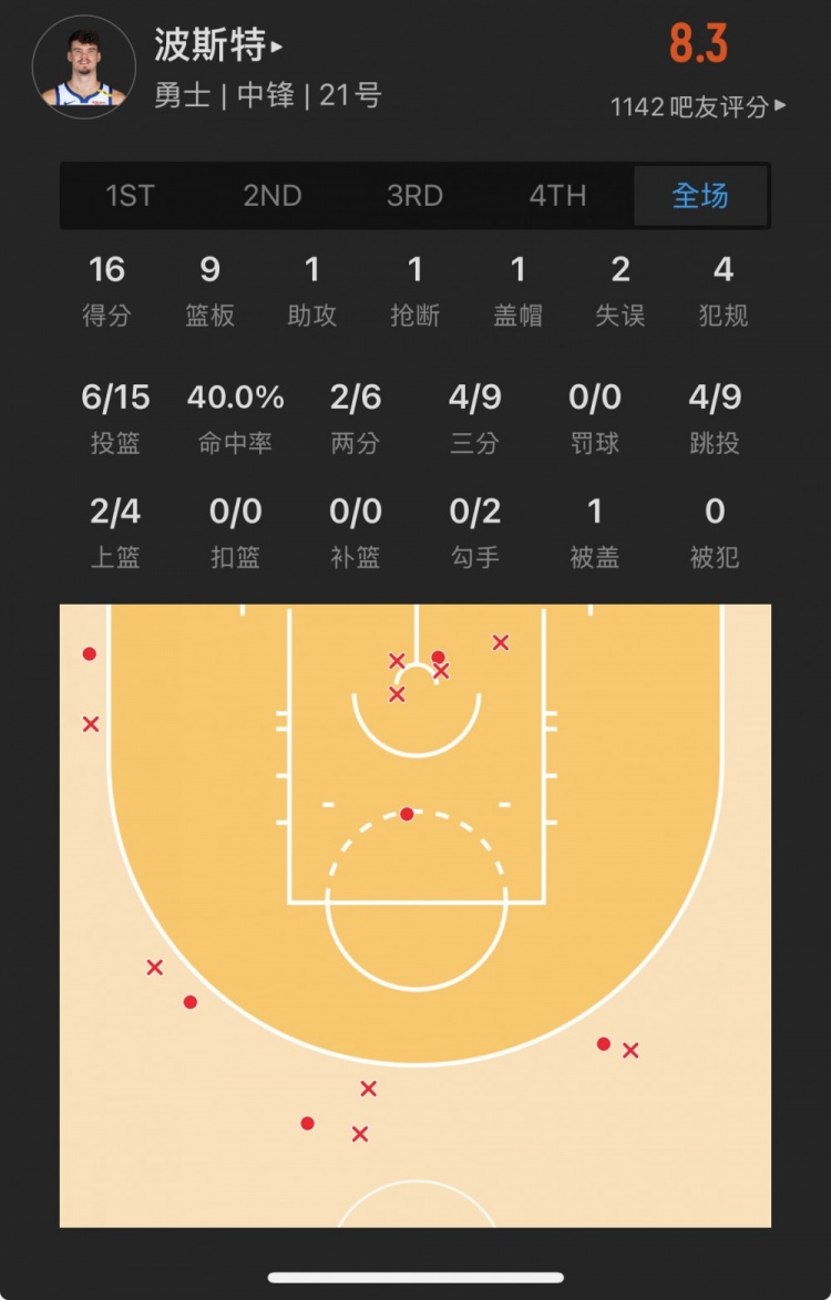 菜鳥丨卡斯?fàn)?6中8砍24分7助 埃迪7投7中17+9 勇士波斯特16分9板