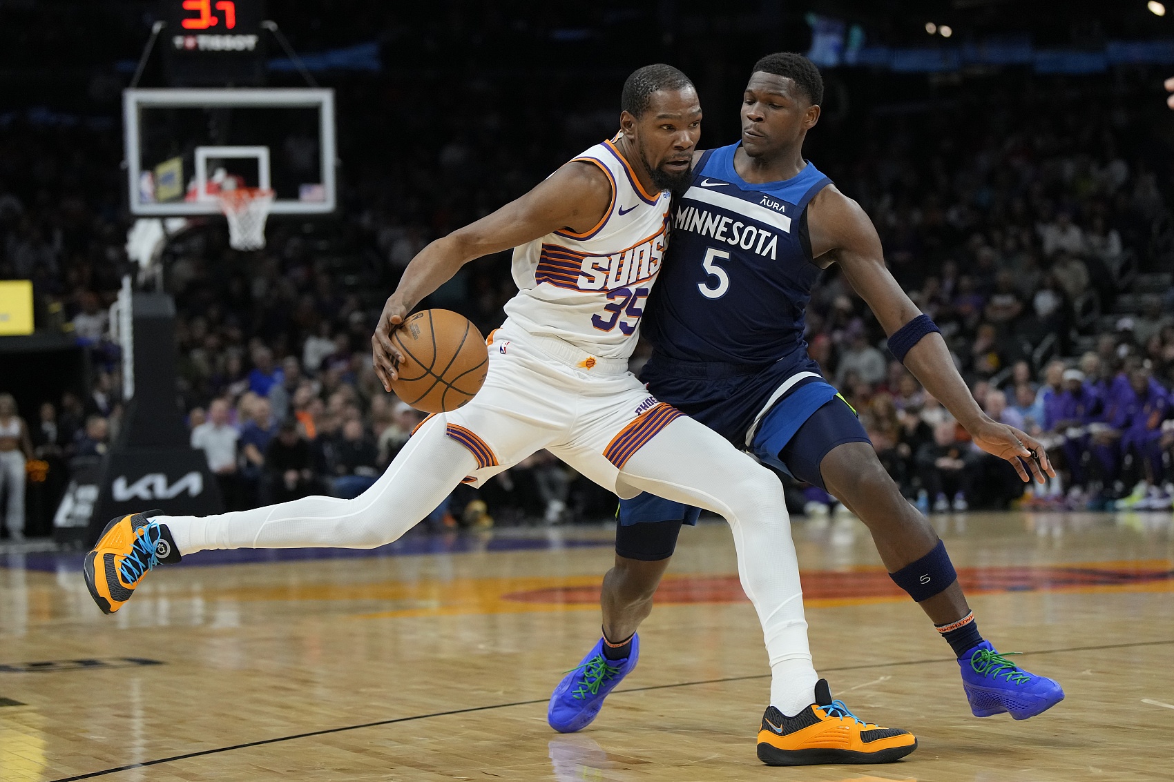 愛德華茲今天打出精彩表現(xiàn),出戰(zhàn)36分鐘16秒,22投12中,三分14投6中,罰球14罰全中,砍下44分5籃板7助攻1搶斷;杜蘭特出戰(zhàn)37分37秒,投籃23中10,三分9中3,罰球7中3,得到26分10籃板4助攻2蓋帽。