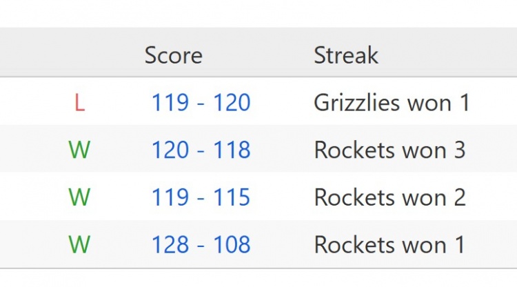 值得一提的是,兩隊(duì)分別排名西部第二(火箭32勝15負(fù))和第三(灰熊32勝16負(fù))。