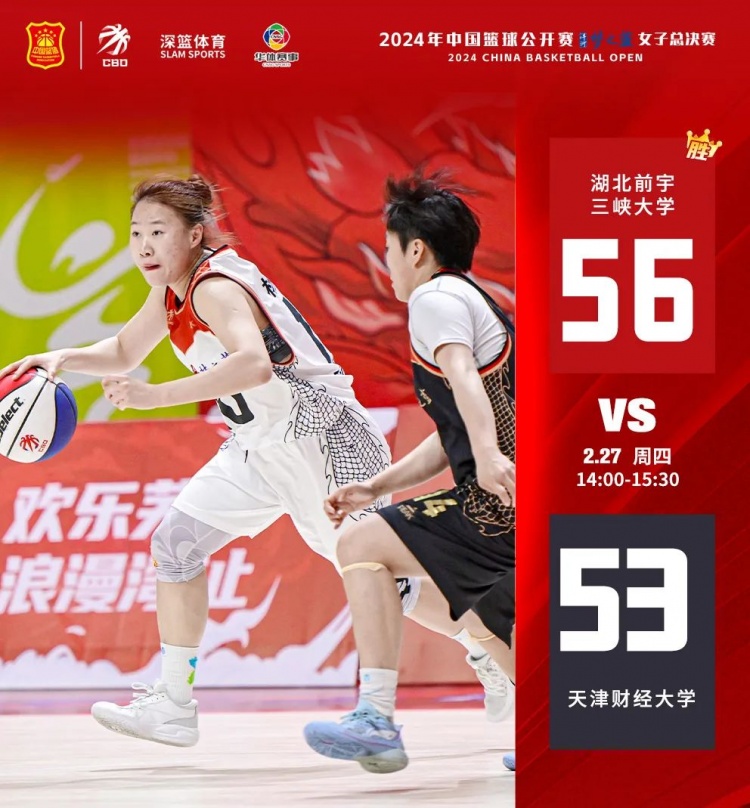 2月27日,2024年中國籃球公開賽洋河夢之藍女子總決賽進入到第三個比賽日。在本輪中,湖北前宇三峽大學、云南隊、湖南師范大學取得勝利。