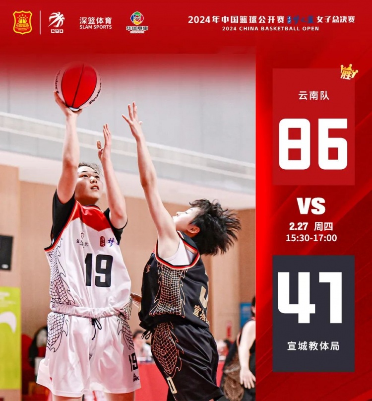 兩連勝的云南隊,本輪對陣實力相對較弱的宣城教體局。上半場,云南隊打出一波11-0的得分潮。落后的宣城教體局在技術上稍顯稚嫩,半場結(jié)束,云南隊43-14宣城教體局。下半場,宣城教體局命中率有所提高,但面對云南隊還是存在很大差距,最終,云南隊86-41戰(zhàn)勝宣城教體局。