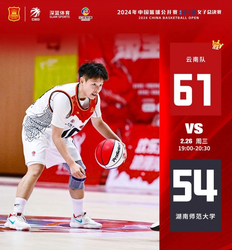 云南隊和湖南師范大學(xué)在本輪相遇,實力相當(dāng)?shù)膬芍蜿牬虻孟鄬δz著。上半場,10平后,湖南師范大學(xué)30號趙詩雨兩分命中,隨后6號沈思榆外線再貢獻(xiàn)一個三分球,15-10湖南師范大學(xué)超出。云南隊依靠6號羅菲和14號娜漢的進(jìn)攻緊咬比分。半場結(jié)束云南隊落后湖南師范大學(xué)1分。下半場,兩隊依舊難解難分。在云南隊幾次外線得分實現(xiàn)反超,14號娜漢外投內(nèi)突,連續(xù)得分,云南隊士氣大漲,最終云南隊61-54戰(zhàn)勝湖南師范大學(xué)。