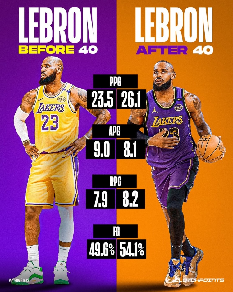 繼續(xù)逆!本季老詹40前場均23.5分7.9板9助 40后26.1分8.2板8.1助