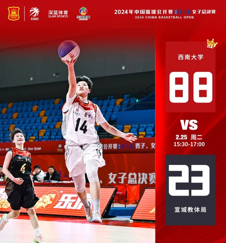 第二場(chǎng)由西南大學(xué)對(duì)陣宣城教體局,兩隊(duì)之間還是存在一定的實(shí)力差距。上半場(chǎng),西南大學(xué)開場(chǎng)打出了一波16-0的得分潮,奠定領(lǐng)先優(yōu)勢(shì)。宣城教體局面對(duì)西南大學(xué)的防守,很難取得有效得分手段。半場(chǎng)結(jié)束,西南大學(xué)47-15領(lǐng)先宣城教體局。易邊再戰(zhàn),西南大學(xué)進(jìn)攻依舊表現(xiàn)強(qiáng)勢(shì),17號(hào)馮藝、7號(hào)應(yīng)茵、10號(hào)李汶璐頻頻出手得分,最終,西南大學(xué)88-23戰(zhàn)勝宣城教體局。