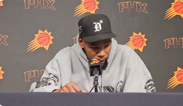 3月5日訊 NBA常規(guī)賽,太陽119-117險勝快船,杜蘭特賽后接受了媒體采訪。