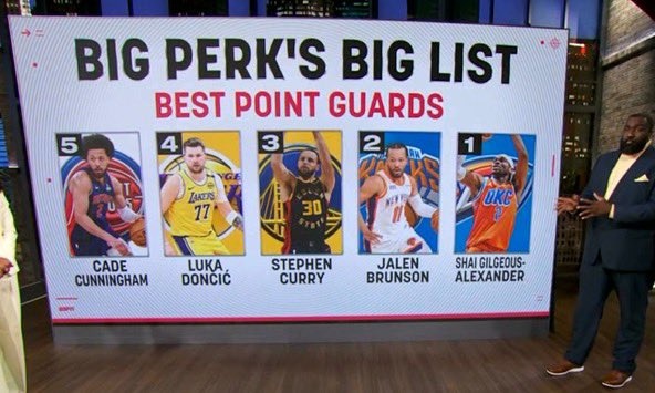 3月6日訊 今日,評(píng)論員帕金斯在節(jié)目上列出了他心目中聯(lián)盟目前前5的控衛(wèi):