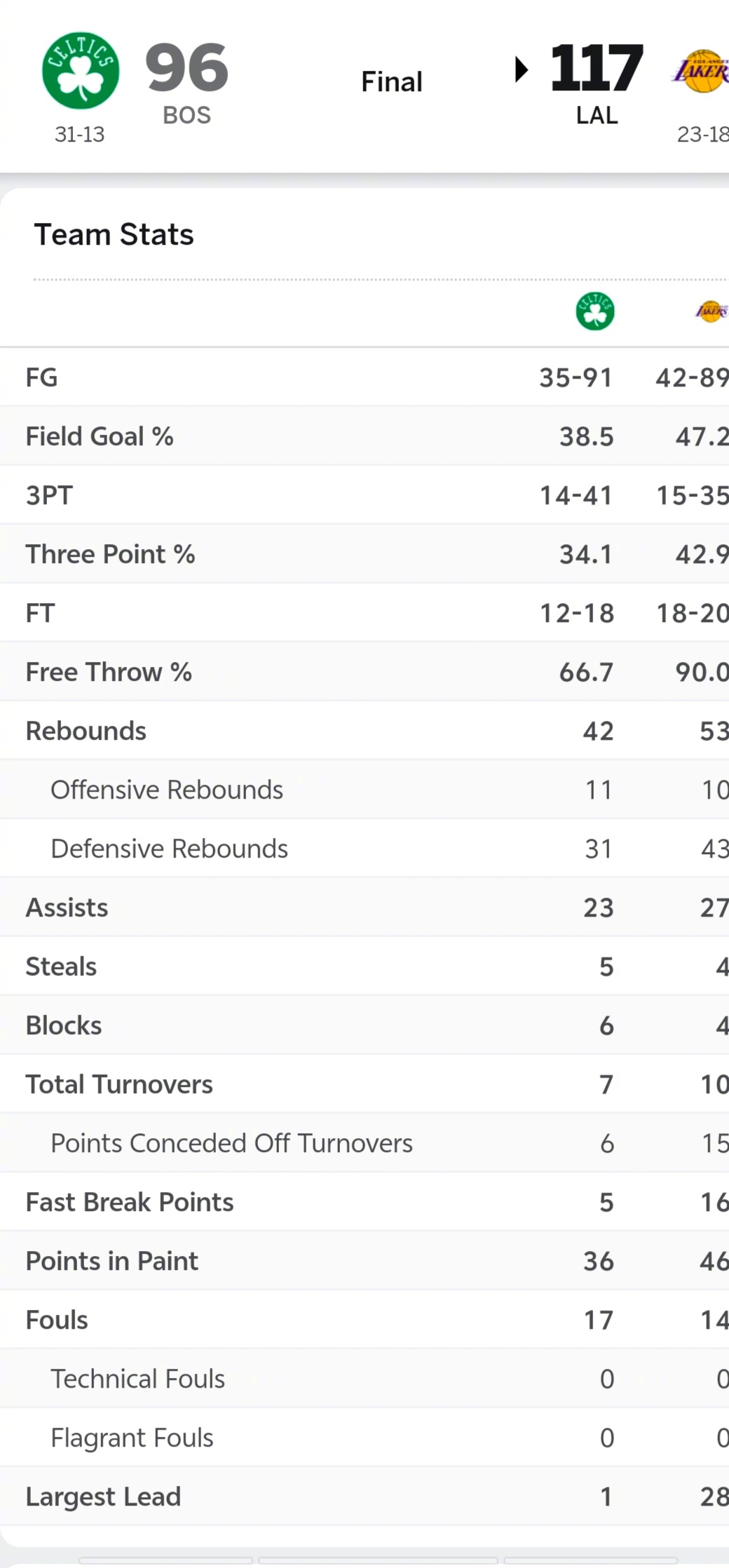 01月24日訊 NBA常規(guī)賽,湖人在主場以117-96大勝來訪的凱爾特人。