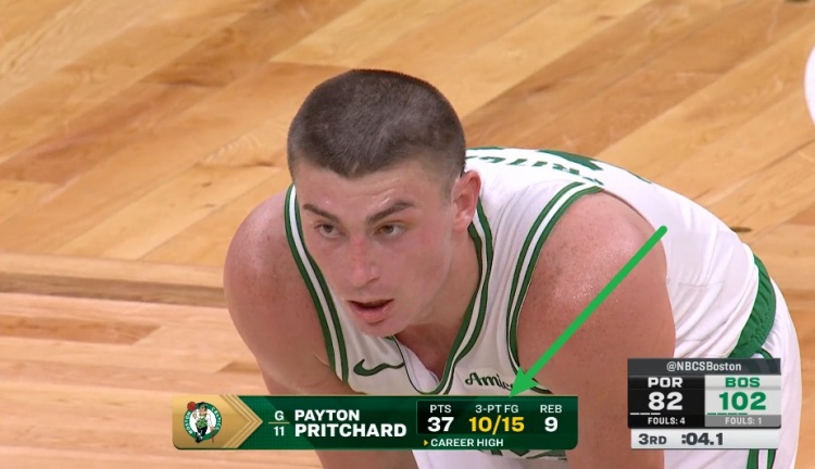 普理查德今天迎來爆發(fā),前三節(jié)17投12中,三分15投10中,罰球3罰全中,已經(jīng)砍下37分,此外還有9籃板5助攻。其中10記三分是他生涯單場新高。