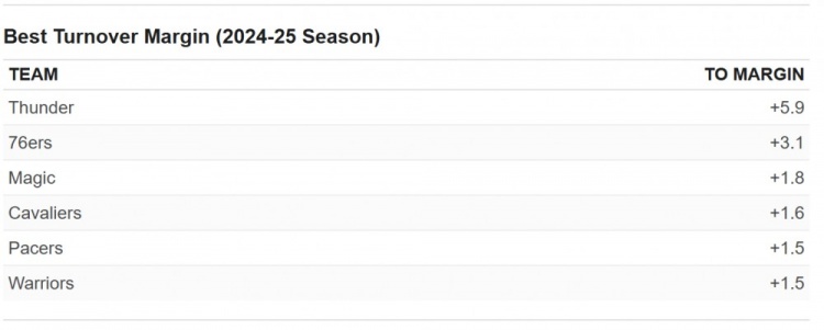 14、雷霆不僅在防守端擅長制造對手失誤,他們在進攻端的失誤控制也是聯(lián)盟最佳。這種雙重優(yōu)勢意味著雷霆每場比賽比對手少失誤5.9次,這將打破1987-88賽季掘金創(chuàng)造的5.1次紀(jì)錄。本賽季,只有一支球隊的失誤差能達到雷霆的三分之一。