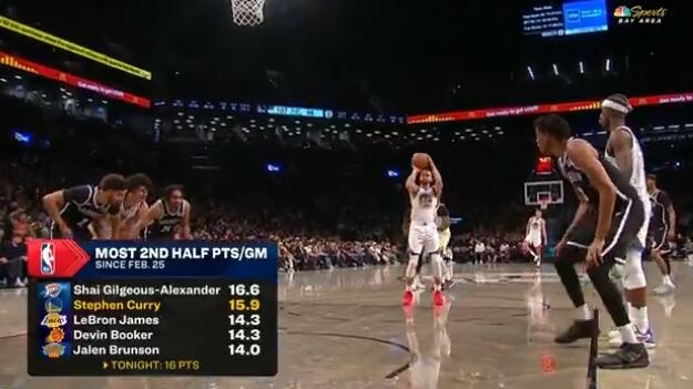 2月25日以來下半場場均得分:庫里15.9僅次于SGA 詹姆斯排第三