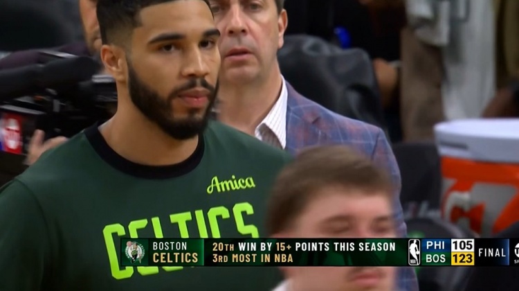 轉播方曬出護具,這是凱爾特人本賽季第20次單場凈勝15+,這一數(shù)據排名聯(lián)盟第3位。具體數(shù)據如下: