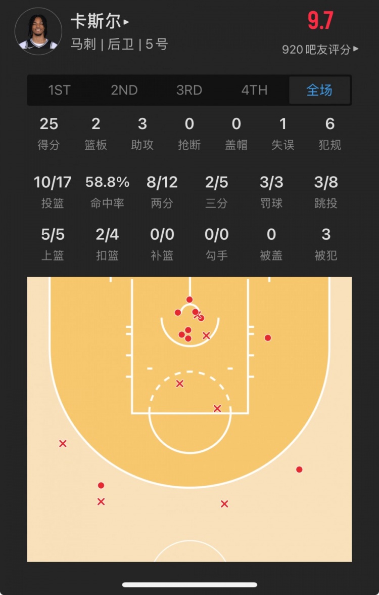 菜鳥(niǎo)丨卡斯?fàn)?7中10空砍25分 菲利波夫斯基17+5 埃迪8分13板3帽