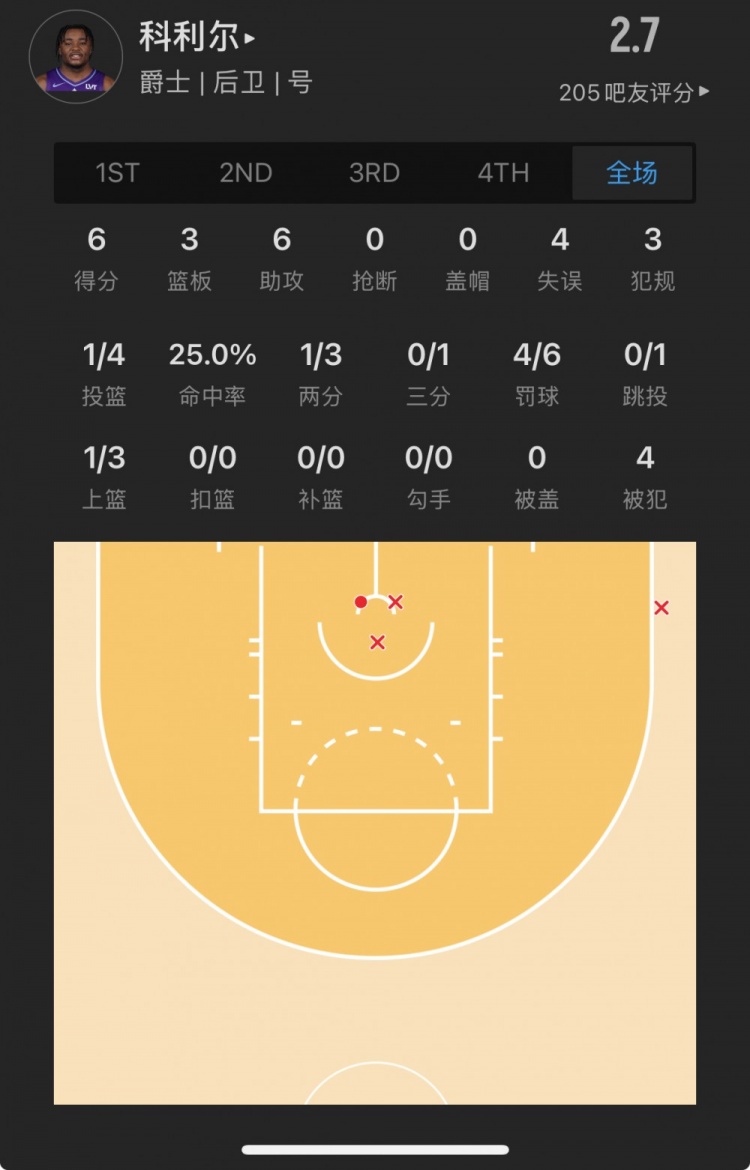 爵士29號(hào)秀 以賽亞-科利爾 登場(chǎng)29.9分鐘
