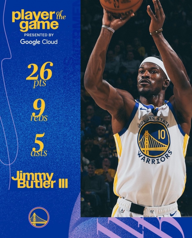 賽后,勇士官方選擇巴特勒為本場最佳球員。