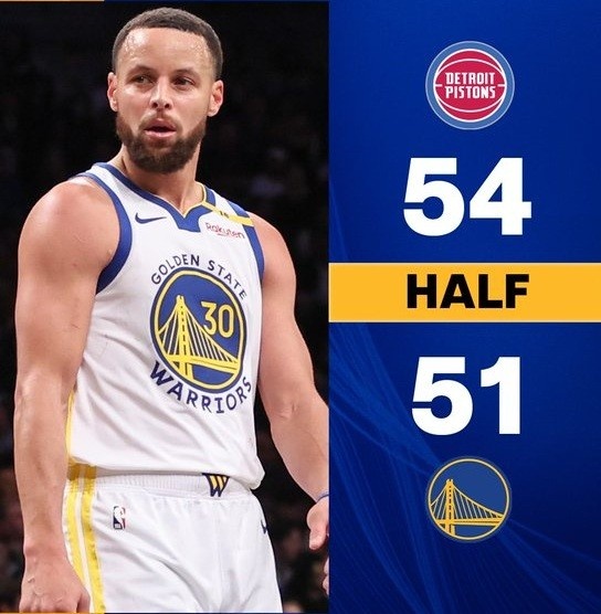 3月9日訊 NBA常規(guī)賽今天繼續(xù)進行,勇士在主場迎戰(zhàn)活塞。半場結(jié)束時,勇士51比54落后。