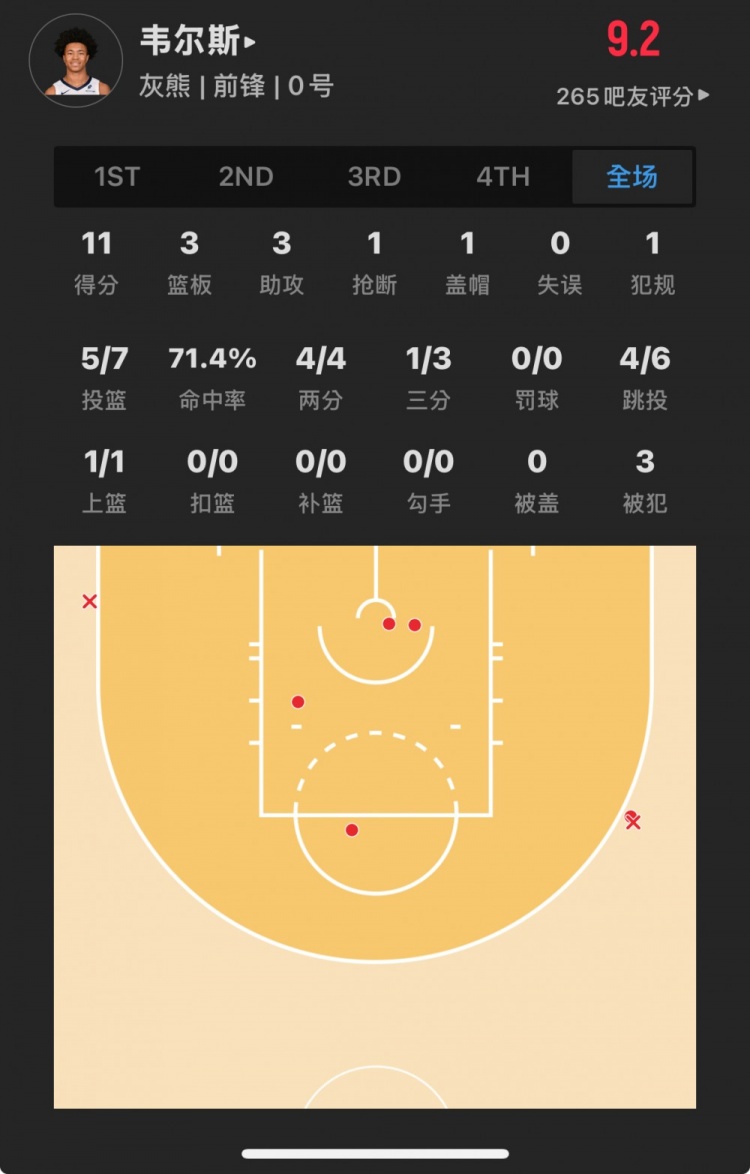 灰熊39號秀 杰倫-韋爾斯 登場30.1分鐘