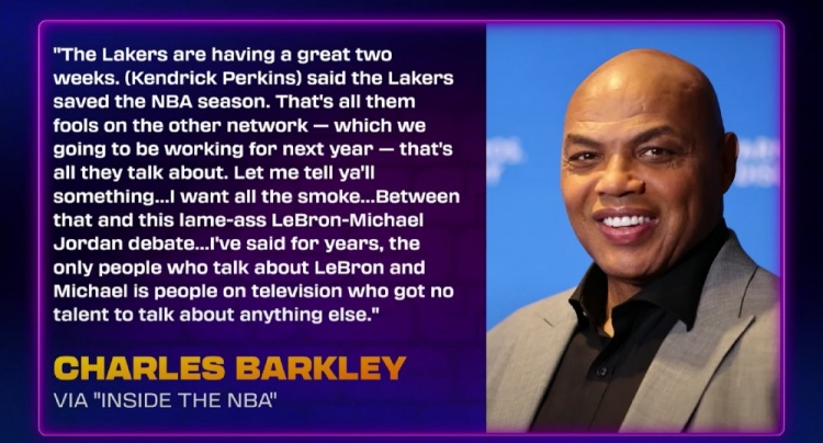 他說:“湖人隊(duì)在過去兩周的表現(xiàn)非常出色,而帕金斯說湖人隊(duì)拯救了NBA賽季。另一家媒體(ESPN)的那些蠢貨——我們明年就要為他們工作了,他們整天就聊這些。我跟你們說,我可不怕爭(zhēng)議。除了這個(gè),還有勒布朗和邁克爾-喬丹誰更厲害這種無聊的爭(zhēng)論。我都說了好幾年了,只有那些在電視上沒別的話題可聊的人才會(huì)談?wù)摾詹祭屎瓦~克爾 ?!?/p>