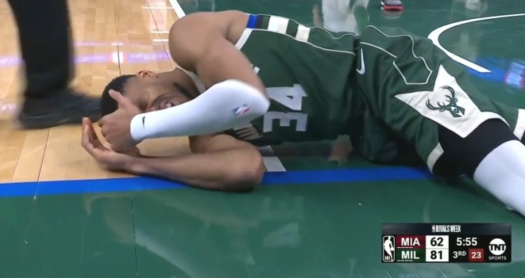 看著都疼!字母哥和阿德巴約拼搶 被后者肘到面部痛苦倒地