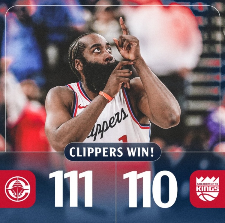 賽后,快船官方曬出了贏球海報(bào),封面給到了哈登。