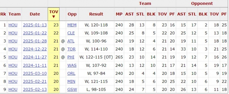 怎么做到的?火箭本賽季失誤20+次的比賽8勝1負(fù) 只輸勇士