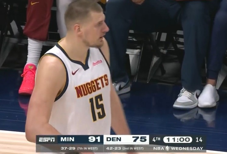 第四節(jié)還剩10分33秒時,約基奇已經出戰(zhàn)32分鐘48秒,21投12中,三分6投2中,罰球7罰5中,得到31分7籃板4助攻1搶斷。
