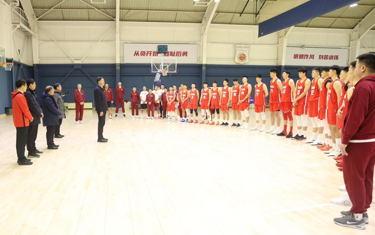籃球館中,國(guó)家男子籃球隊(duì)正在積極備戰(zhàn)亞洲杯預(yù)選賽第三窗口的比賽。高志丹說(shuō),男籃是中國(guó)體育的旗幟標(biāo)兵,新一代男籃要牢記為國(guó)爭(zhēng)光的使命責(zé)任,加強(qiáng)隊(duì)伍的思想作風(fēng)建設(shè),科學(xué)訓(xùn)練,發(fā)揮榜樣的力量,希望大家團(tuán)結(jié)一心,共同努力奮斗。“爭(zhēng)取在奧運(yùn)會(huì)的開(kāi)閉幕式上再次看到男籃隊(duì)員成為中國(guó)體育代表團(tuán)的旗手?!?/strong>高志丹鼓勵(lì)大家。